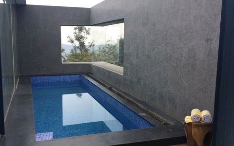 Room has a spacious living area with dining area and beautiful view from living room. There is television facility in living and bedroom with air conditioning. Depth of the private pool is 5 ft. 4 Pax can be accommodated.