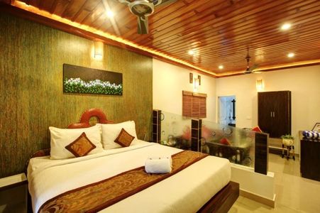 Imagine taking a morning walk through lush greens and coming back home to find the newspaper in the porch, while the sun shines softly on you. The Mellow Glory rooms are made just for that feeling. These rooms evoke the feeling of those petite Coorgi homes with the traditional sloping roofs, along with all the great amenities and a pleasing view to serenade you.